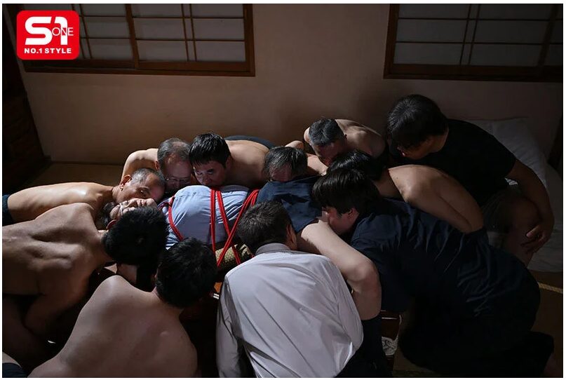 拘束され、逃げ道を断たれ、複数の視線と手に囲まれる。画面は騒がしくなるのに、彼女だけが静かだ。声を抑え、歯を食いしばり、目を閉じる。そこにあるのは快楽というより、状況に呑み込まれていく感覚だ。わちゃわちゃと触れられる中で、主導権が完全に失われる過程が、妙に丁寧に描かれている。