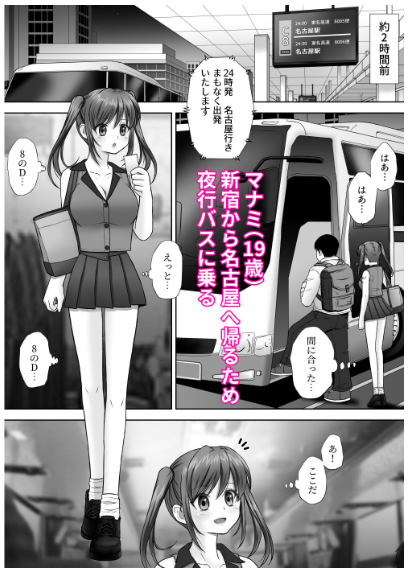 東京で遊び、名古屋の自宅へ帰るため、夜行バスに乗り込んだマナミ。